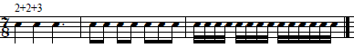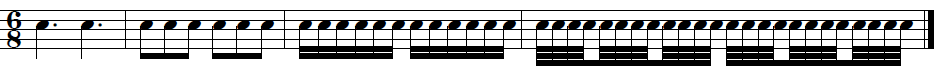 می گیرد که یک کششِ سیاه را بوجود می آورند و سه چنگِ دیگر که برابر با یک سیاه نقطه دار هستند، ضرب دیگر را می