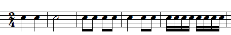 همانطور که در شکل بالا می بینید، تمامی میزان ها برابر با دو کششِ سیاه یا به عبارت دیگر دو ضرب هستند.
