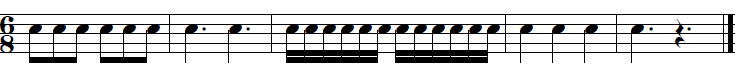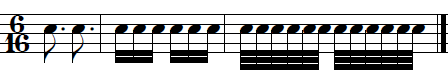 می گیرد که یک کششِ سیاه را بوجود می آورند و سه چنگِ دیگر که برابر با یک سیاه نقطه دار هستند، ضرب دیگر را می