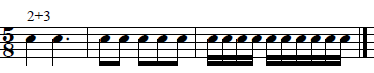 می شود. مثلا در یک قطعه ضربی چنانچه از یک ضربِ قوی تا ضربِ قوی بعدی دو ضرب وجود داشته باشد و این مقوله به صورت